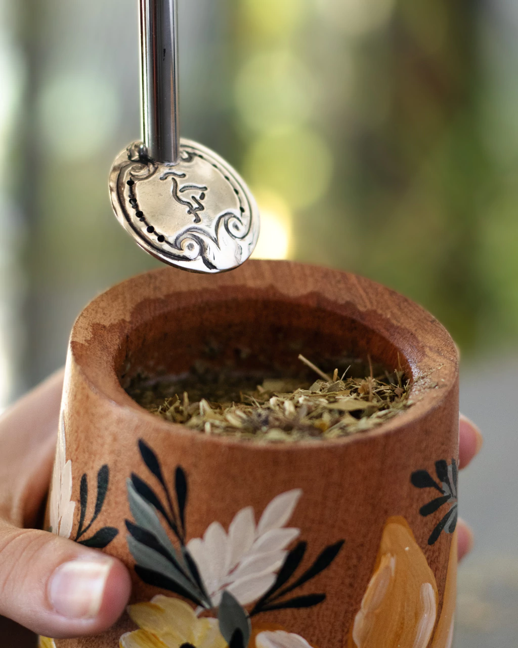 Bombilla de alpaca modelo Hojas con boquilla, ideal para armar mas fácil y cómodo tu mate.