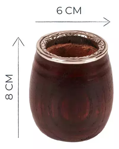 Tiene 8cm de altura y 6cm de diámetro aproximadamente. Las dimensiones pueden variar dependiendo el tamaño de la Madera.