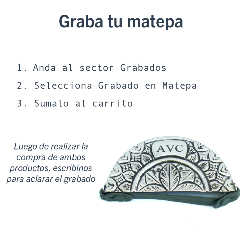 Para grabar tu producto tenes que agregar al carrito de compras la opción de grabado correspondiente a tu producto. Podes encontrar todas las opciones en el sector GRABADOS, en nuestra pagina web. Una vez realizada la compra, nos contactas por mensaje privado indicándonos que le gustaría grabarle! Es importante que el mensaje sea enviado antes de las 13hs. De no ser asi, el pedido sera despachado sin grabado.